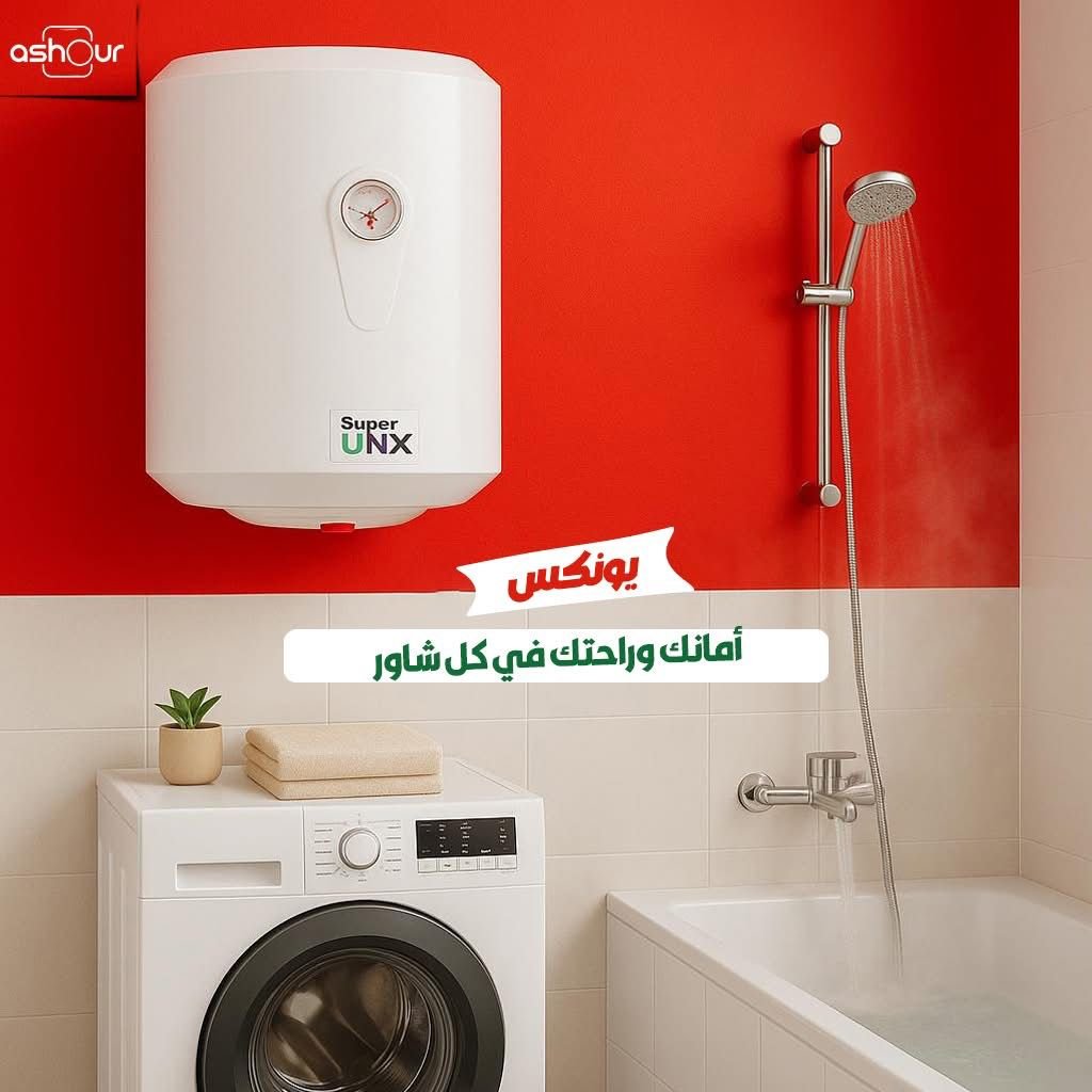 سخان المياه الكهربائي سوبر يونكس اختيار مثالي لكل بيت بيدور على الجودة، التوفير، والشكل العصري في نفس الوقت.