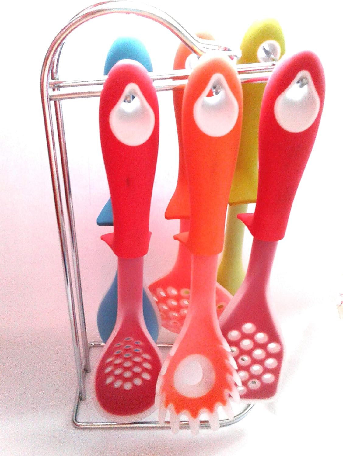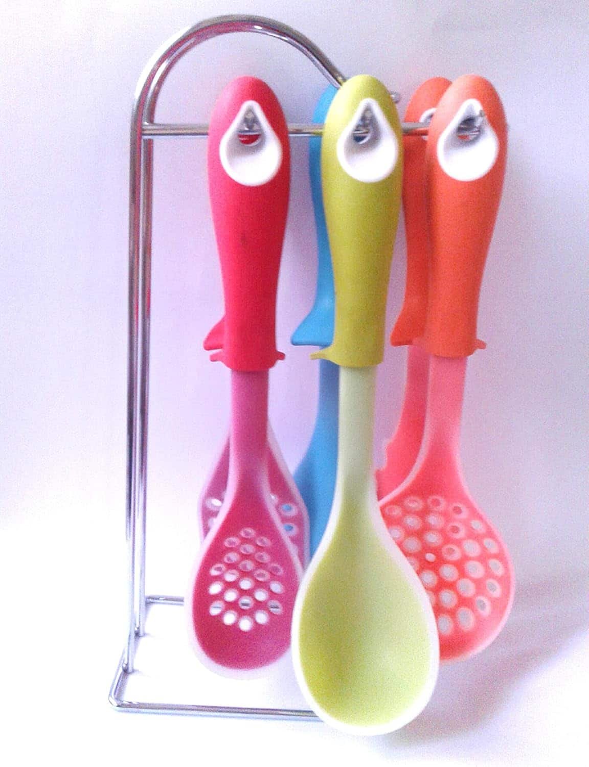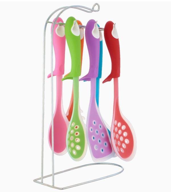 طقم توزيع سيليكون عملي ومتين مكوّن من 6 قطع مع حامل ستانلس أنيق بحجم (20×11×38 سم).