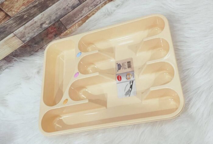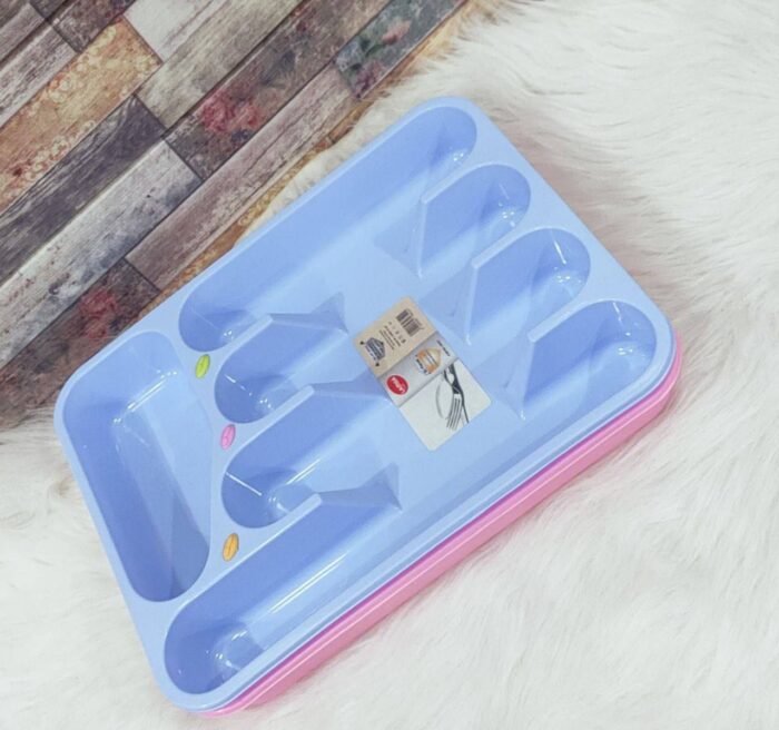 المنظم يأتي بخمس خانات مخصصة لتخزين وترتيب مختلف أنواع المعالق والشوك والسكاكين. تم تصميمه بشكل يضمن سهولة الوصول إلى الأدوات التي تحتاجها دون عناء. بفضل حجمه المناسب، يمكنك وضعه داخل الأدراج أو على الطاولة دون أن يشغل مساحات كبيرة، مما يجعله خيارًا مثاليًا للمطابخ الصغيرة والكبيرة على حد سواء.